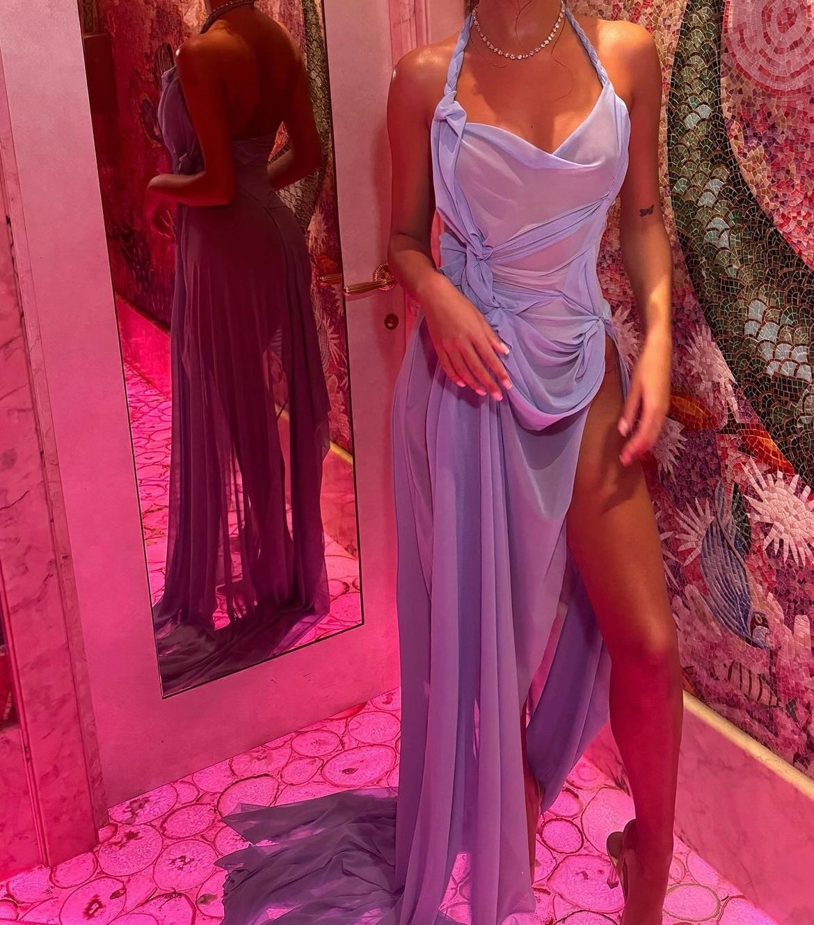 The ultimate it girl dress. Our baby blue mesh stretch drape dress is now available to buy. Can be made in any colour. Drop us an email / Instagram message to discuss other colour options.